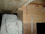 梁を油圧ジャッキで持ち上げ柱を入れました。 台所の戸の立て付けへの影響が予想されますので、経過を観察する必要があります。 (現状で開け閉て出来るよう調整してあります。一冬経てば落ち着くでしょう。)