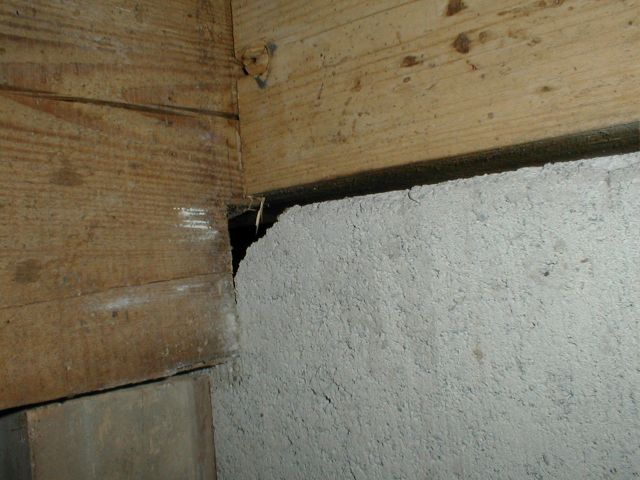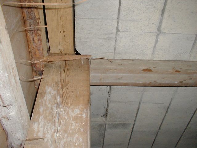 台所の床下のブロックが1箇所欠けて梁が片側浮いていました。